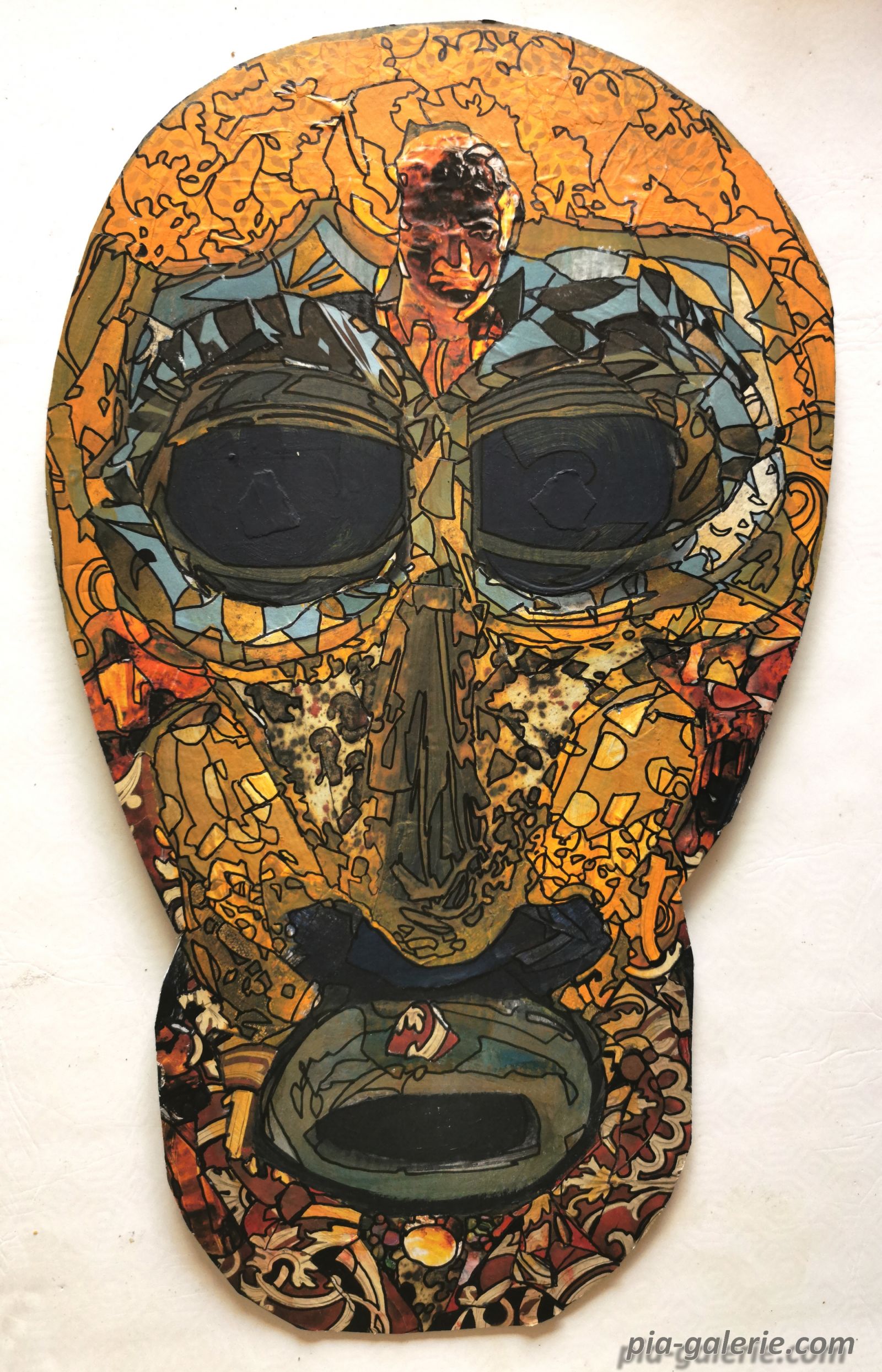 "Pour ce masque, je me suis amusé avec la forme et les collages. Cela donne un visage étrange, comme celui d’un guerrier des temps anciens."